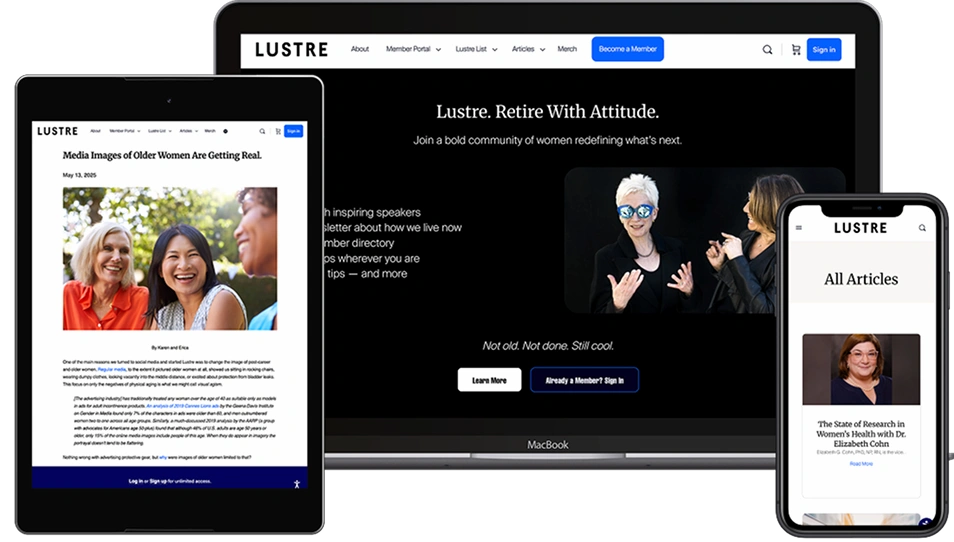 Lustre Connects is a monthly member call for conversation and connection around Lustre-related topics such as retirement, identity, aging, and life transitions.